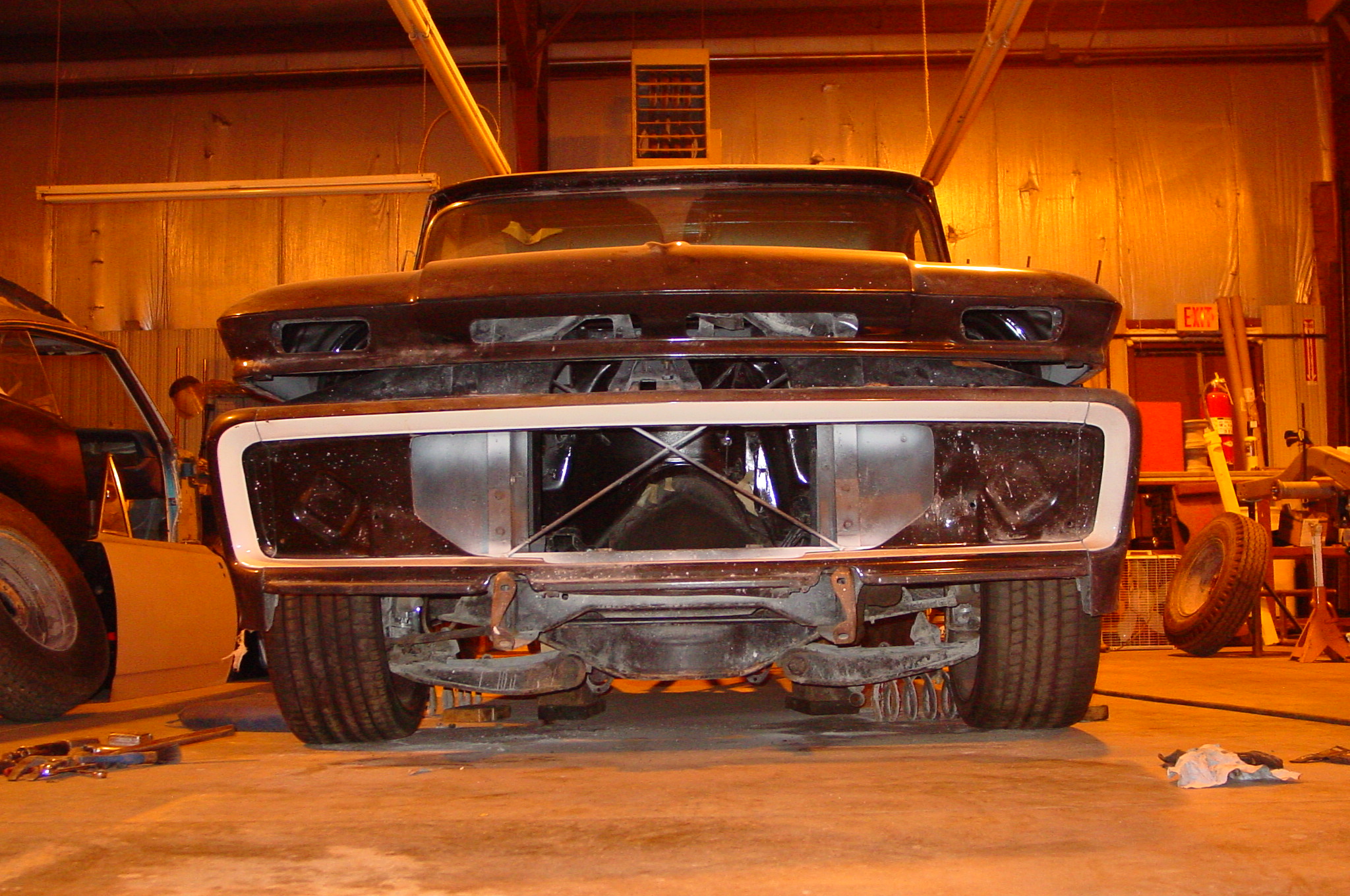 After blasting the old paint off we found a lot of filler over the rust holes. We removed the old rusted metal and replaced them with new steel. Now that the body is solid, the modifications have begun. -- Firewall, inner fenders, front fenders, front bumper, rear bumper, tailgate, and rear wheel opening.