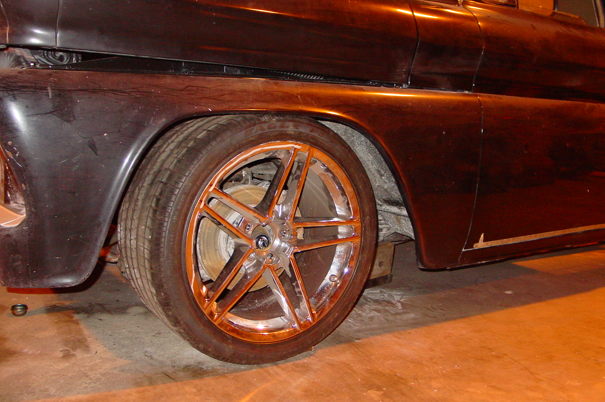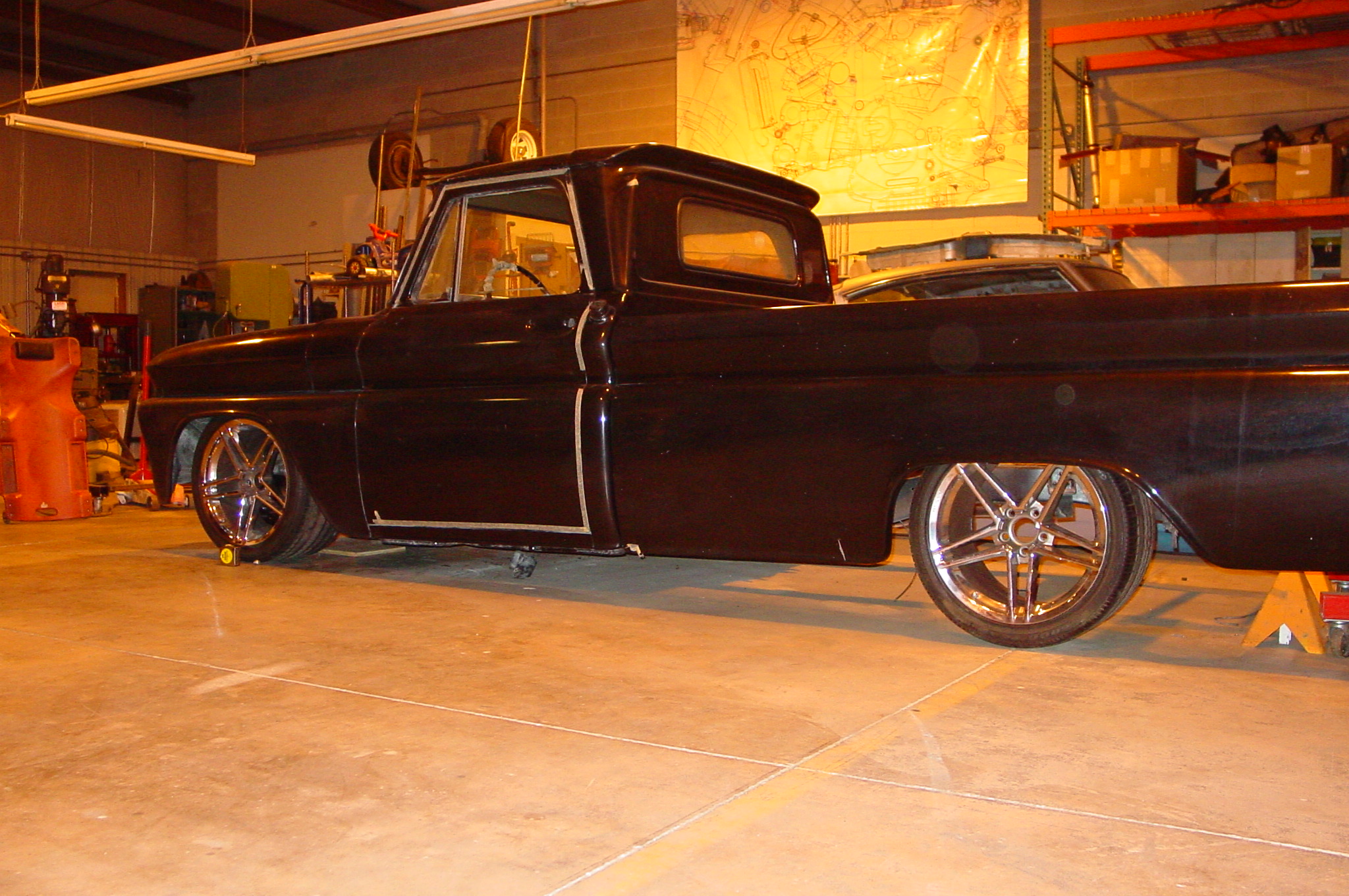 1964 Chevy C10. An iconic truck for its era. Fast forward to 2014 and see a 1964 Chevy C10 with an LS 7 mounted in front of a Tremic T56 six speed., Wilwood six piston front calipers grabbing on to 13 inch front rotors. The rear nine inch sports four piston calipers pinching 12 inch rotors. Add to this a Roadster Shop Chassis, and it seems to us that this pick up is shaping up to be a kick ass truck!