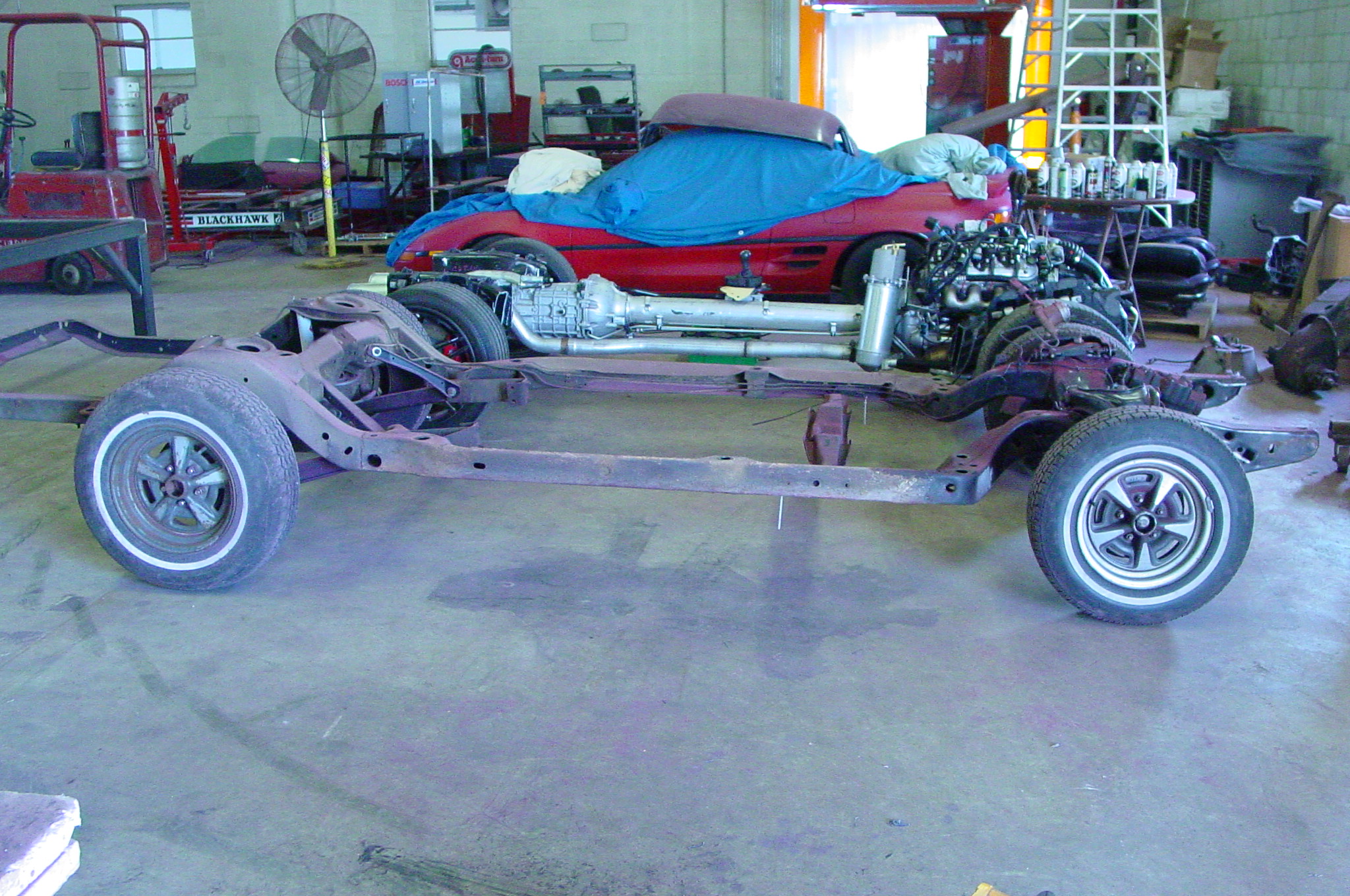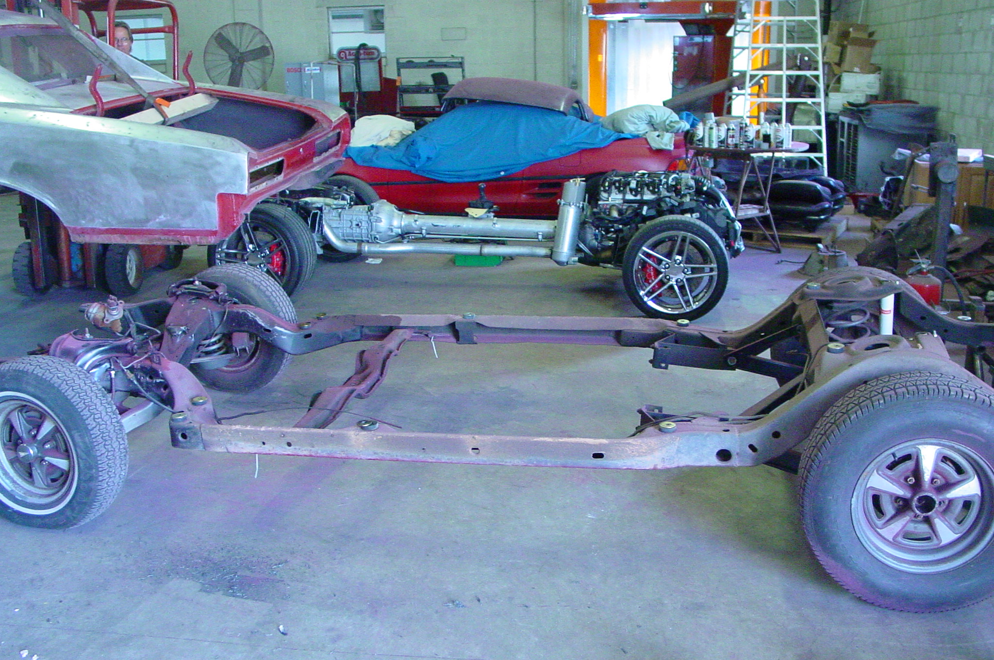 Once Midnight Hot Rods received the go ahead we spent 11 months searching for a suitable body. After looking at 10-12 different cars we came upon this one. This body has almost no rust; and all of the trim is in excellent shape. This is just what we were looking for. The next step is to find a donor chassis. Well not only did we find a C6 Chassis but we found a 2007 C6 Z06 chassis with just 13,000 miles. This chassis is complete with all of the Z06 goodies, great big 6 piston front brakes and 13" rotors. A complete LS-7 dry sump engine, that may get updated to the LS-9...