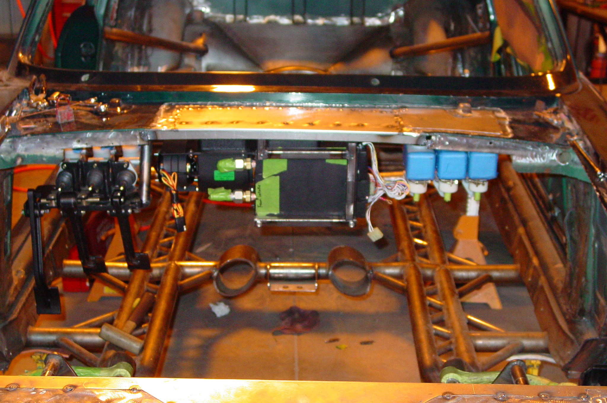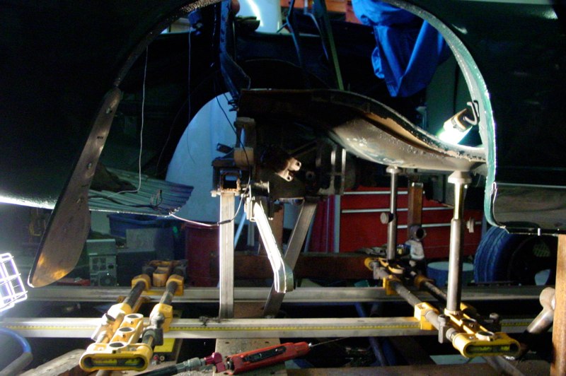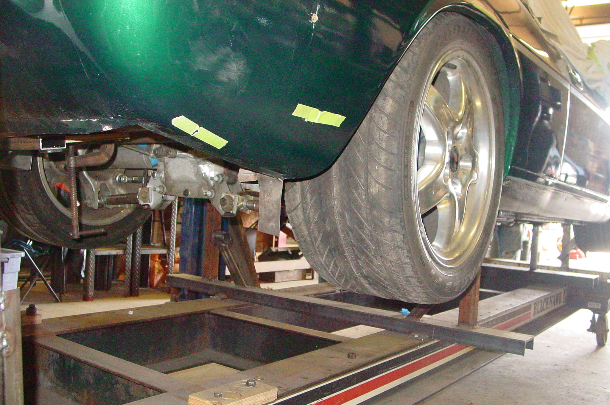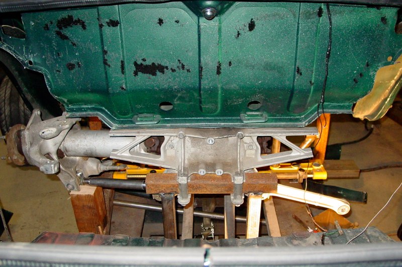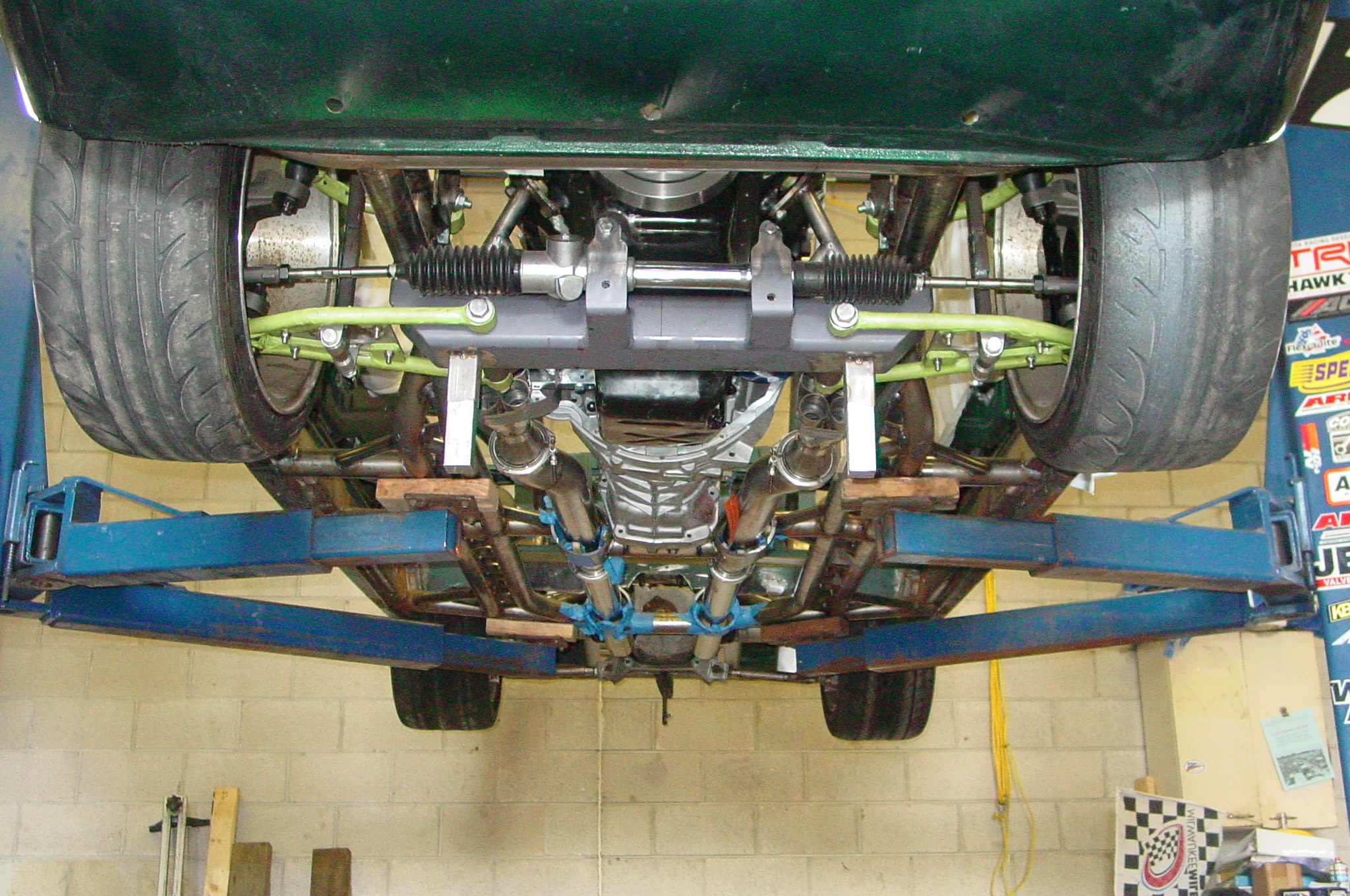 Monsterous 4 wheel disc brakes, narrowed Corvette rear-end, custom Mustang II style front suspension, Chevy ZZ383-425 Crate Motor with aluminum fast-burn heads, a 4 Downdraft Weber Inglese intake, 6-speed manual transmission, and more trick mechanicals executed by Midnight Fabrication. All of this on a factory right-hand drive chassis.