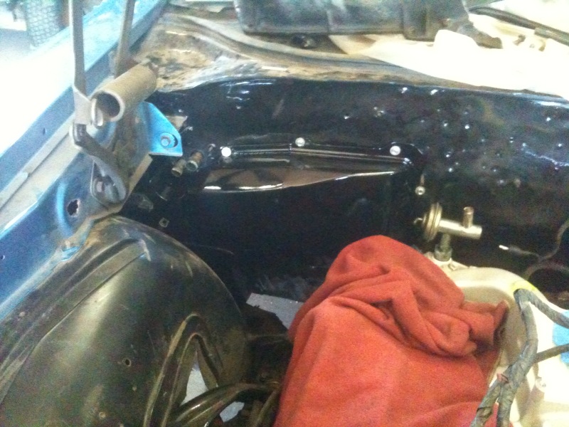 A custom airbox has replaced the factory A/C, the entire front suspension has been overhauled and rebuilt to factory specs, and all wiring and installation has been done by Midnight Fabrication.