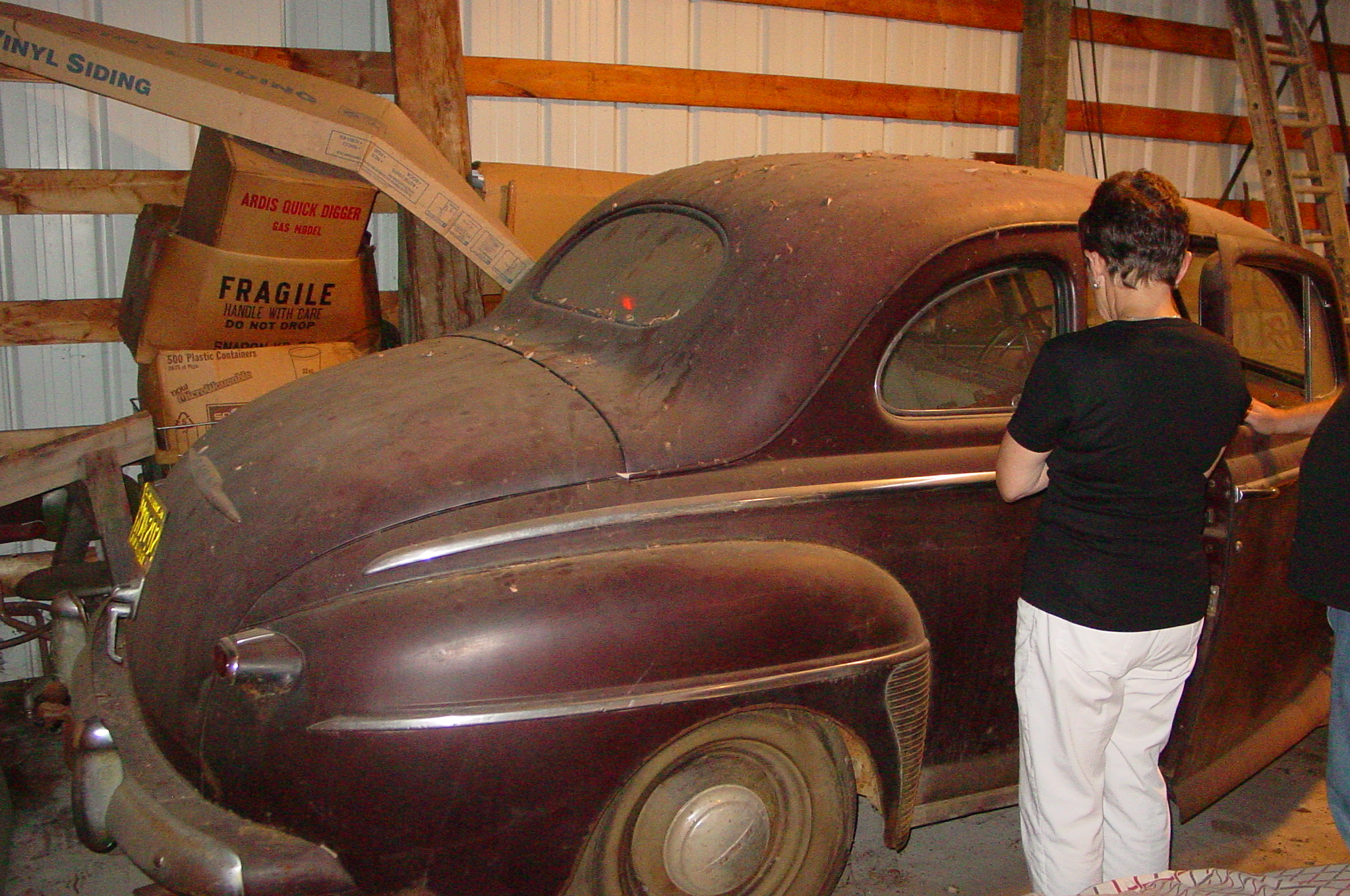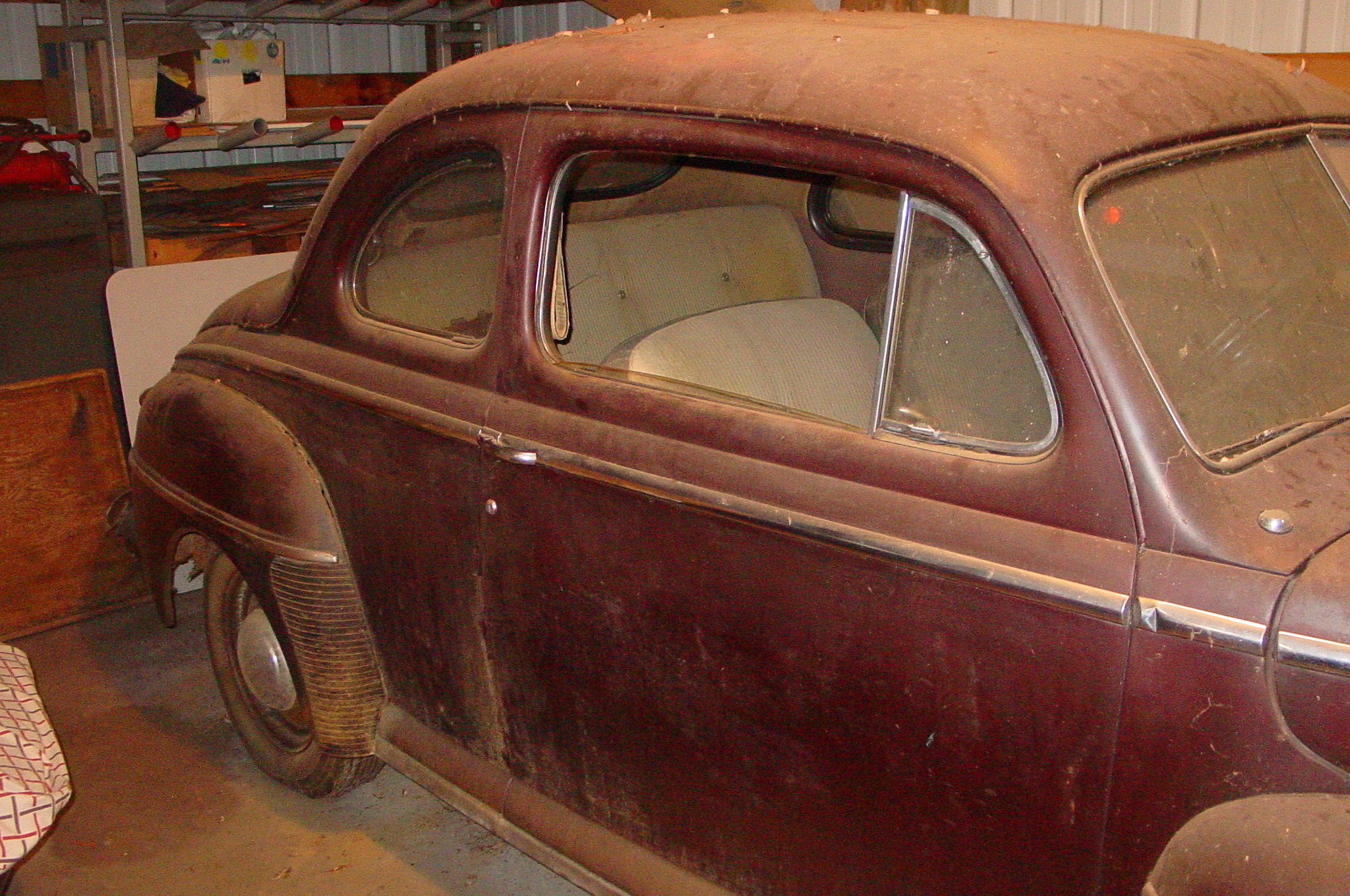 SOLD    1948 Ford Coupe. This car has been in storage since 1969. At that time it was driven in and the engine had oil put into the cylinders. All of the trim is there and in very good shape. The interior in complete and in fair shape. There is also a Ford visor that is in the back seat. The body is in excellent shape for the age, with a few rust spots.